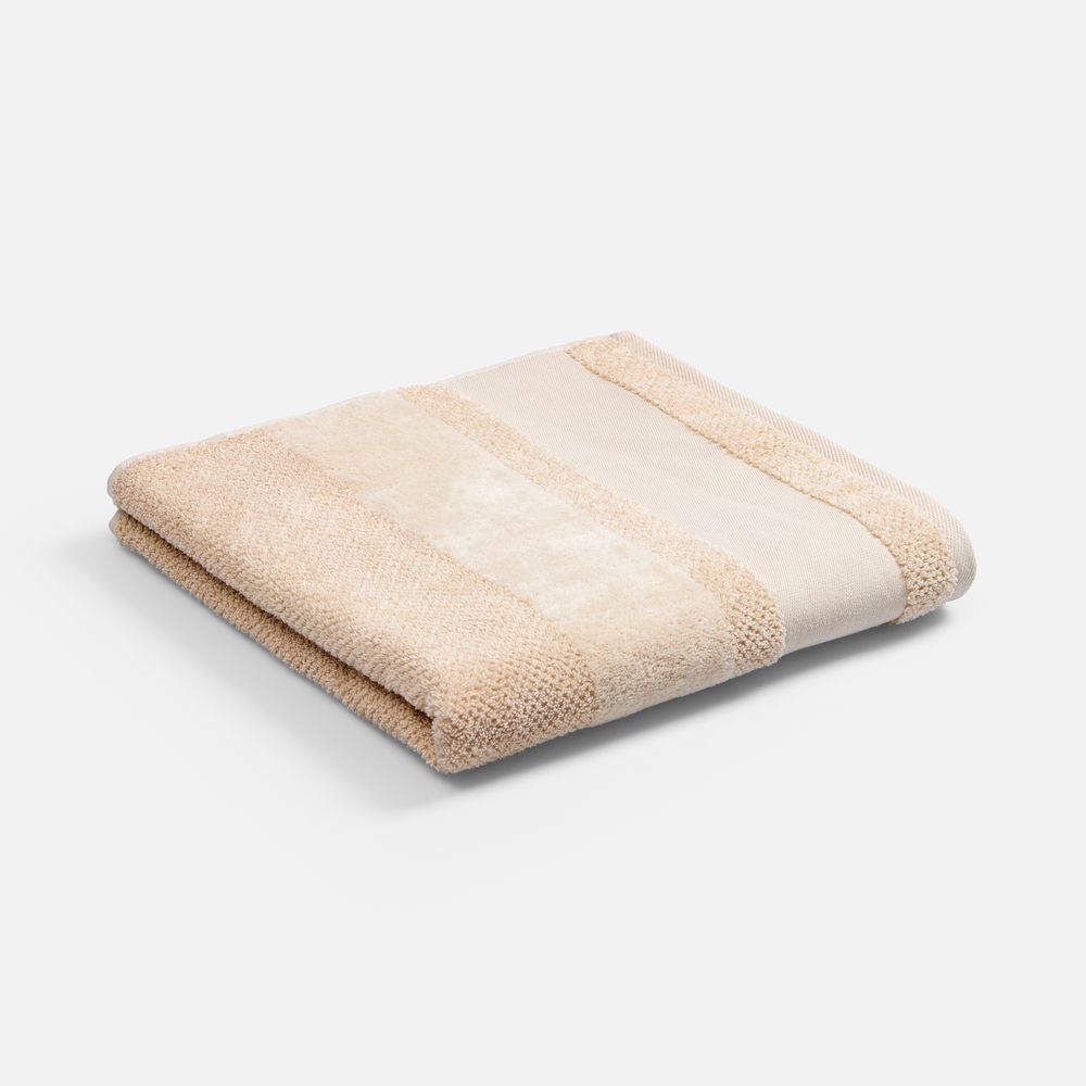 Пышная рельефная структура создает эффект роскошного спа-ухода и быстро впитывает влагу благодаря расположенным пучками петлям, а изящная полоса из стриженных петель с эффектом велюра добавляет ему мягкости и элегантности. Практичный гладкий бордюр станет идеальным холстом для нанесения символики и позволит создать уникальный персональный подарок.