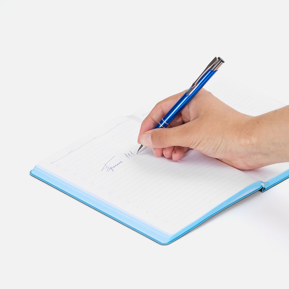 Яркая шариковая ручка с глянцевым цветным корпусом и хромированными деталями.